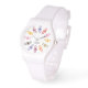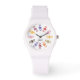 I only have one complaint. I ordered the watch with clear case and strap, and what was sent was white case and strap. I'm going to keep it because 1) it looks very nice in white, and 2) it would take too long to get a replacement made and sent in time for my occasion. Aside from the mix up with the color, the watch does look very good in white. The purple dial is actually sparkly which did not show in the online images. That was a nice surprise. If you like Swatch watches this is very similar to those. It's 33.6mm in diameter, 10.5mm thick, and 40.6mm lug to lug. Stainless steel case back says 3ATM/30m WR, so no swimming or showering or submerging this one. If you like Woodstock, this is a great choice.