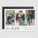 This simple, stylish modern three photo wedding save the date magnet template features your photos and a 'Save the Date' message in black in a unique script that we first wrote by hand and then adapted for use here. This element of the design is an image and can't be altered. But you might choose to change the font, size or color used for the other text. You might choose to delete the sample location without replacing it with your own for a simpler look. The default color for your names, date and location text is a slightly softened black. Customize this simply chic modern wedding save the date three photo collage magnet template with your favorite photos and your inspiration and make it uniquely yours!