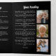 This elegant celebration of life, memorial service, or funeral program serves as a heartfelt tribute, honoring a cherished loved one with grace and dignity. The design features a sleek black background with refined white typography, creating a sophisticated and timeless look. The front cover presents a collage of 6 photos, offering a lasting visual tribute. Inside, the program includes space for an order of service, obituary, heartfelt acknowledgments, or any text of your choice. Additional photos add a personal touch, celebrating the life and memories of the honoree. Thoughtfully designed, this program serves as a meaningful keepsake for family and friends, ensuring a touching and memorable farewell.