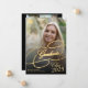 Elegant classic chic calligraphy script high school college university simple stylish black and gold graduation announcement with 6 custom photos and text template.