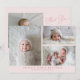 Simple birth announcement card featuring a 3 photos with the newborn's name and info on the bottom. You can add another photo and a message on the back.