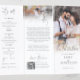 Multi-purpose Photo Overlay Program Menu Z. Say hello to the ultimate wedding day essential! This elegant and thoughtfully designed Z-fold brochure is more than just a program – it's a fully personalized keepsake for each guest. Thanks to its unique Z-shape fold, the final panel displays a large table number, making it perfect too for standing upright on your reception tables – no need for separate table number cards!