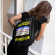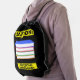 A great backpack with a progressive message to carry your books and other needed items. Design features a multicolor stack of books with black on yellow text that reads "CAUTION! MAY CONTAIN BANNED BOOKS".