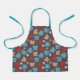 Great color and even though I ordered the kid size, it covers well enough to use during the holidays. I am not a big woman and prefer a shorter apron. I stand 5"6" and the length of the garment goes to mid-thigh. The tie straps fit well at my waist and even though there is no neck strap adjustment, the opening is plenty big enough. I am happy with the size and fit. I am sharing my apron with my 10 year old grandson, too! The color is vibrant and looks good, as shown on the website. The stitching looks strong and reinforced. Photographed is front side and back side of the apron, reinforced straps and coloring. My phone camera may not be the best at showing the details.