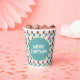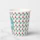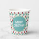 These festive Christmas party cups will certainly bring good cheer. The pattern is created with red, green, blue, and dark green trees. Each tree has texture added for depth. The pattern is set against a very light gray background. The plate currently says "Merry Christmas". This is a template that can be customized if you choose to do so.
