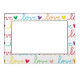 Perfect for a bedroom or dorm room, this bright and cheerful magnetic frame features an adorable cursive love & heart print in pink, blue, green, and orange.