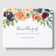 This multicolor elegant floral wedding guest book is perfect for a modern wedding. The design features neatly hand-drawn bouquets of pink, blush, yellow, burgundy, red, indigo flowers and green foliage, inspiring natural beauty.