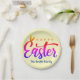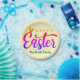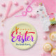 Multicolor Happy Easter- rainbow color happy easter lettering with bunny ears, yellow background