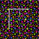 A pattern of tossed hearts in pink, orange, yellow, green, blue and purple colors on a black background.