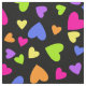 Multicolor Hearts on Black Fabric