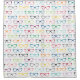 A fun and colorful hipster shower curtain with multicolor glasses on a white background. Colors include aqua, blue, yellow pink, purple, white, lime green, orange and gray.