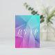 Sharp and modern Jewel Tones Wedding Response Postcard featuring a multicolor (blue, purple, pink, and turquoise) funky geometric triangle background. This chic and simple design is a unique choice for a modern wedding. Easy to customize with your wedding details. Click "Customize It" to find more personalization options.