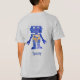 Send your child or grandchild back to school in style with this slightly geeky but oh so fun T-shirt with multi-color robots. This design features a colorful array of robots in blue, green, purple, and red with gold accents on the front, with a big blue robot and your child's name on the back.