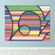 This striking abstract design combines rows of vivid stripes in pink, green, orange, blue, and purple with sweeping black curves that weave rhythmically across the surface. The contrast between structured horizontal lines and free-flowing arcs creates a sense of movement and bold visual energy. Its layered color palette and dynamic shapes give it a modern, playful character that instantly catches the eye.