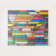 A lively fusion of sweeping curves and horizontal bands, this design bursts with personality through its mix of warm oranges, cool blues, vivid greens, and soft pastels. The overlapping shapes create a sense of motion, almost like a dance of color across the canvas. Both structured and spontaneous, it brings a cheerful, modern energy that feels bold yet balanced.
