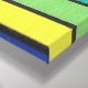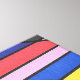 This bold abstract design weaves together horizontal stripes in a rainbow of colors—reds, blues, greens, yellows, and purples—cut through by sweeping black curves that bend and twist across the composition. The overlapping shapes create a sense of movement, almost like a kaleidoscope of color in motion. Bright, dynamic, and endlessly engaging, it blends order with spontaneity in a modern, eye-catching style.