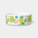 This is a heavy, durable bowl decorated with Tibbies of many colors, the perfect size for hungry/thirsty Tibs. The design is interesting and printing clear.