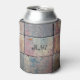 Multicolored bricks in earthy gray red, grey and yellow of this urban design paves the way to a cold brew in this can cooler you Personalize with Initials like graffiti on a gritty urban street.