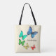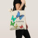 Beautiful Multicolored butterflies on white Tote Bag. Text can be personalized. Elegant women shopping bags.