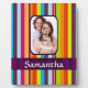 Easily personalize this fun colorful multi colored candy stripe pattern design by adding your own photo of your loved one and name or text to the templates to make a unique customized product. Visit the PHOTOGIFTZ STORE for matching products. The template photo image text and can easily be replaced with your own, Photographs of the same 4 x 3 dimension should replace the template image exactly. If your photo is of a different dimension you may have to use CUSTOMIZE to adjust the size, of the photo and text, by drag and drop.