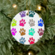 Multicolored Dog Paw Print Pattern Ceramic Ornament