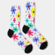 This fun Halloween socks are bright and colorful. The small print is crisp and shows the fun details. The softness of the socks feels nice on my feet and ankles. .
