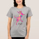 Tee in a colorful and playful cat depicted in a whimsical design with swirling patterns in vibrant hues of pink, yellow, blue, and green. Below the lively cat, the word "Frolic" is written in an elegant cursive font.