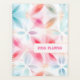 Overlapping multicolored geometric flowers adorn this planner cover (front and back). Customize it with the year (front) and short saying (back).