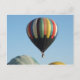 A colorful hot ait ballon that has just lifted off as well as several still inflating.