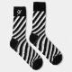 Change the colors of the upward sloping stripes of the design on these crew socks to your taste, using the color swatches in Zazzle's editing tool. You can also change the direction of the stripes by flipping the design, or change the slope angle by rotating the design as required, using the rotate tool or design the rotate-handle that appears when the design is selected. Also, you can personalize the initial, change its color, size, font, and location, as well as the width and the color of stroke and fill of the top band. Or you can remove the initial and the band altogether by deleting them or making them invisible, using the Layers option on the left panel.