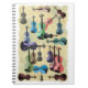 The cover of this notebook looks as if a remnant of retro wallpaper has been placed on it, covered with violins of various sizes and assorted improbable colors. Matches several items in my store.