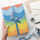 Yellow, orange, blue and green colors, a wrapping paper designed with a multicolored wave pattern. Customize the pattern size among other options.