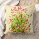Bunch of wildflowers and text Wildflowers. Colorful and lovely throw pillow with colorful meadow wildflowers on beige background.