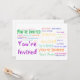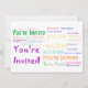 Yes, you can print on the back of your invitation for free! Most designs already have a corresponding design on the back that can be personalized using the Design Tool and going to Layers. This is a great way to communicate more information or further personalize your Multicolored Youre Invited Party Invitation. The option is really up to you.