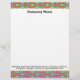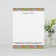 This brilliant multicolour honeycomb customizable letterhead has an abstract pattern with rows of pink blue and purple diamonds on it. Each row is separated by a row of dark green diamonds. Each of the dark green diamonds has a hole in the middle of it. The paper is white and there is bold black customizable text on it. The template allows you to type your name or company name at that top and all your contact details at the bottom. The patterns sits above the company name at the top and below the other text at the bottom. You also have the option to click on the "customise it" button and change the colour of the paper, experiment with different fonts and font colours and move the text, or add additional text. While this letterhead was designed for business use it could also be used at home for writting letters, invitations etc. With all the customization available this letterhead is versatile enough to do whatever you want it to.
