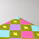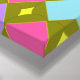 This awesome canvas print has an abstract pattern with rows of pink blue and purple diamonds on it. Each row is separated by a row of dark green diamonds. Each of the dark green diamonds has a hole in the middle of it. Heres the fun bit, you can fill in that hole with a choice of over 200 colours to make a unique design. Here the holes have been filled with a beautiful yellow colour as an example. To select your colour and see the effect it has on the design simply click on the “customise it” button, go to the colours section and click on background then pick whichever colour you would like to put into the design. You can try as many colours as you like until you find the one that works for you.