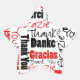 Say thanks with a star shaped sticker with a multilingual design of a red and black "Thank You" word collage in a variety of font styles and sizes over white. Click customize to select a background color other than white.