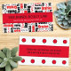This business card front features a classy red and black multilingual thank you typography word cloud background. It is designed as a business loyalty punch card. The punch circles are on the back with a message of gratitude. Fill in the template fields with your information for the front and back, REMOVE any text or click customize to select a typeface style, size, and color you prefer.