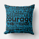 Multilingual Type Blue & Black Courage Pattern Throw Pillow