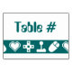 This table card features an accent band in deep teal with a pattern of white video game related icons, including D-pads, joysticks, computer mice, and 8-bit hearts decorating it. Plenty of space is left above the band so you can fill in your guests' names or the table number, so that seating can go more smoothly at your fun and geeky event.