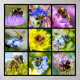 Nine multiple photos bees and bumblebees feeding flowers