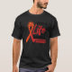 My 11 yo wore adult XL (5’7” 165#). The 8yo is small framed. She wore adult small and tied it in the back. Grandma wore adult large with long sleeve shirt underneath. Tall girl adult medium. Dark haired male adult large. Good quality dark Heather gray, Gildan brand shirt. -it was next up from basic choice and cost about $20 per shirt. Not too thick or thin. Washed and dried well, no major shrinkage. Not see-through. Can wear a bra under it fine. Screen print is just as shown and well done, front and back.