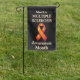 An orange awareness ribbon stands for MS. Multiple Sclerosis Awareness yard sign to help spread awareness for for MS Awareness Month in March.