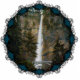 Vintage postcard, from 1935, showing the top of Multnomah Falls in Oregon and the Benson Foot Bridge spanning it. Reprinted on this beautiful Christmas ornament with Victorian trim.
