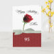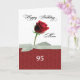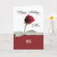At any age, your Mum will be so pleased to receive this pretty red rose on her birthday. The age is customizable, so you can create a more personalized card with her exact age, whether is be 62 or 95! A single long stemmed red rose is in the center, with a red lower portion filled with a subtle swirly pattern. A ribbon is digitally created to look real.