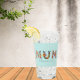 Pretty ale glass features watercolor floral letters that spell out M-U-M with customizable "extraordinaire" in modern script, on pastel blue background