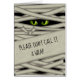 A creepy wrapped mummy with glowing green eyes decorates the front of this fun greeting card along with the first part of our optional message that reads 'Please don't call it a wrap....' The message continues on the inside with 'until you have a Happy Halloween'. A template is provided to add your name and/or alternate text message. Also available in an orange/purple color palette. Search ID685 to see coordinating party supplies and accessories with this great mummy pattern.