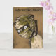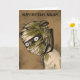 Birthdays can be scary. Send your favorite fan of monsters and horror movies a creepy cool personalized birthday card. This greeting card features an illustration of a mummy, zombie girl in beige, black and olive green set against a light brown background. This card is ready to be customized with your own choice of message on the front and on the inside to create a personalized card for birthdays or any occasion.