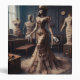 Steampunk Victorian style is given a vintage twist in this design of a gothic horror mummy with elegant Hollywood glamour with her sharp black hair, top hat and clockwork gears.