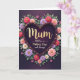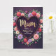 This greeting card features a rich palette of deep purples with bright floral accents, centered around a large heart-shaped frame in dark plum edged with a thin golden outline and tiny light-like dots that feel like a gentle, romantic sparkle ❤️. Inside the heart, the main word “Mum” sits prominently in gold lettering, giving it a cherished, close-to-the-heart look. Just below it, a smaller message in soft white lettering reads “With love on Mother’s Day and always,” tucked neatly within the heart to feel intimate and close. Surrounding the heart is a lush ring of layered flowers and foliage, arranged as if they’re softly sculpted, with petals that overlap like a caring embrace. The blossoms mix fuchsia, lavender, blush pink, and white, each with golden-yellow centers that echo the gold text and add a warm glow 🌼. Green leaves thread through the arrangement, balancing the purples and pinks while guiding the eye back toward the words. Behind everything, the background fades through dark shades, helping the heart and flowers stand forward with gentle shadows under the petals and along the frame.